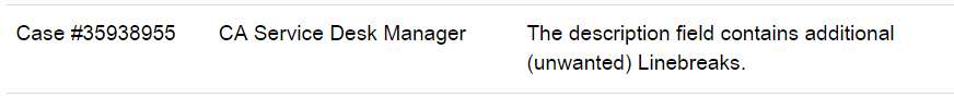 Please upgrade to 17.4.4 to address this issue. This is addressed under case 35938955: The description field contains additional (unwanted) linebreaks