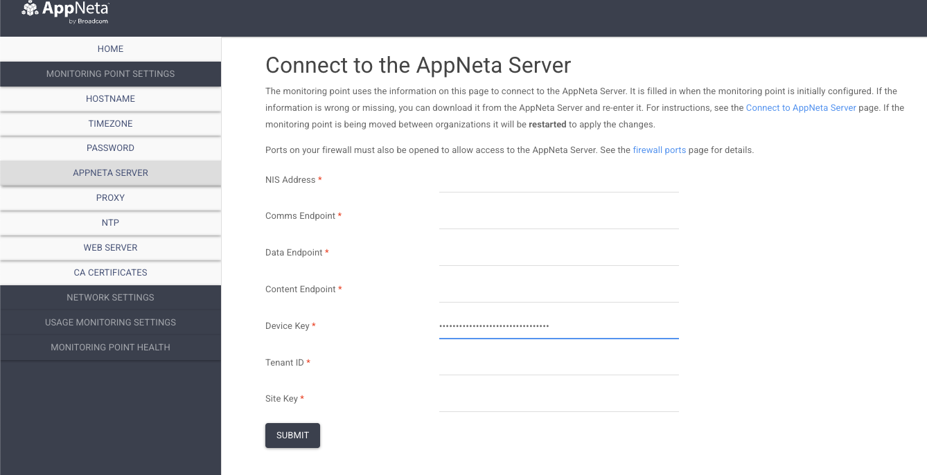 3. Verify the settings remain present, by selecting a different tab, and checking the Appneta Server settings again, or alternatively you can restart the monitoring point the settings again.