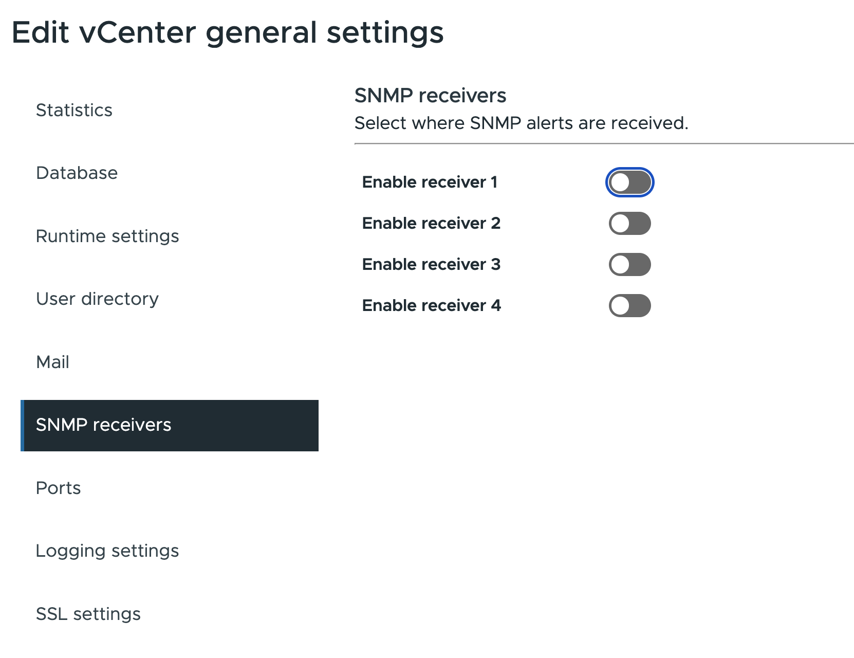 The SNMP receiver 1 is enabled by default in a vCenter server. If the customer is not using SNMP this can be disabled.