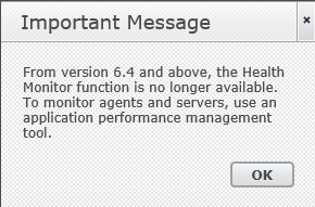 From version 6.4 and above, the Health Monitor function is no longer available. To monitor agents and servers, use an application performance management tool.