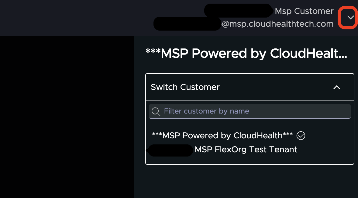 To view the customer tenants, please click on your name in the top right corner to switch customers.
