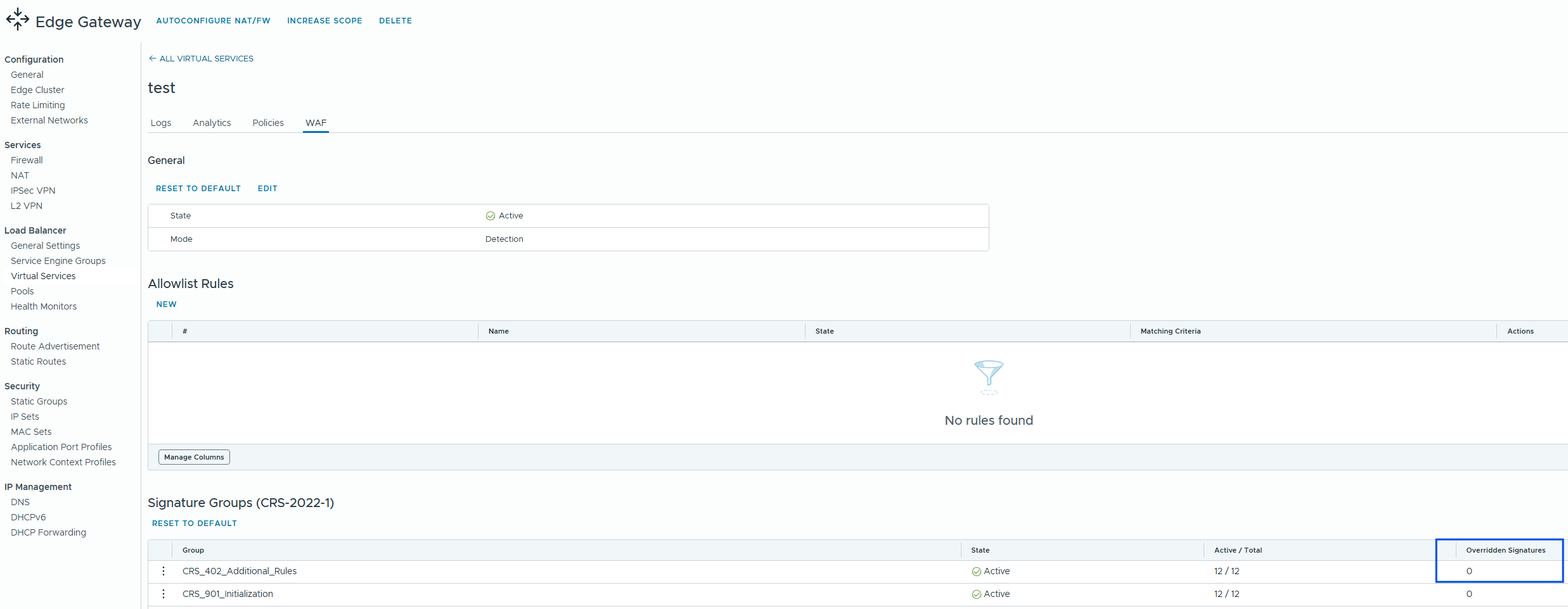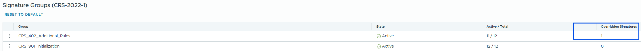 Reverting changes on the signature group does not remove the 'crs_overrides' parameter from NSX Avi's API response and as a reason overridden signature count remains 1.