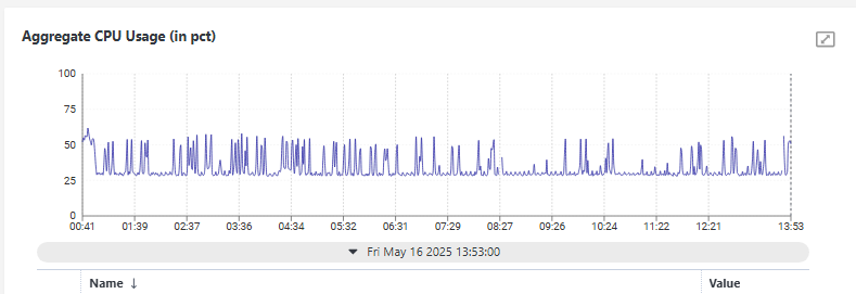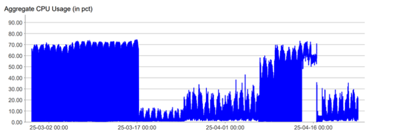 If the QOS interval is very low (Example 1 minute) the graph will show every data point, and for higher time ranges it shows and connect all the datapoints and the graph tries to fit them all in the graph, so it can become hard to read.