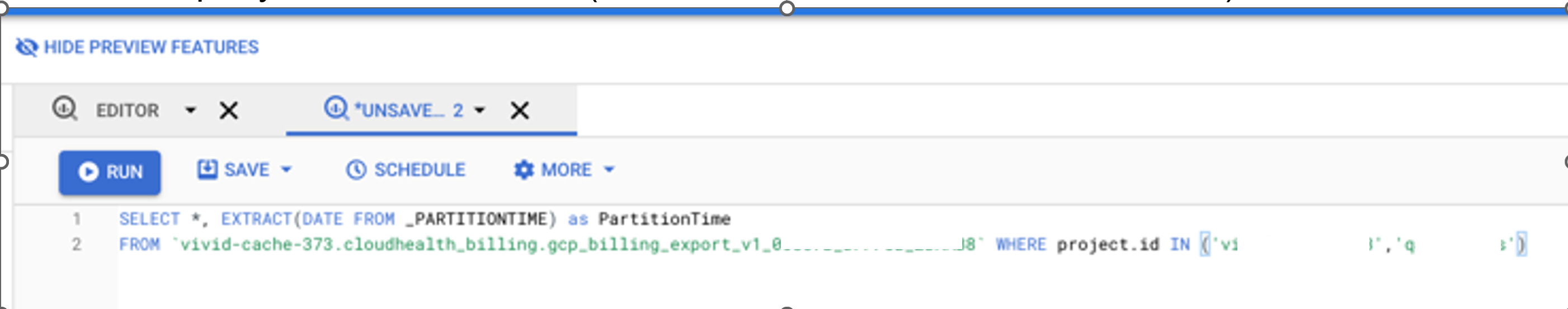 As a direct customer, you wish for CloudHealth to provide reports solely on a specific selection of projects within your Billing Account. To achieve this, it is necessary to establish a BigQuery View derived from the standard BigQuery billing export, applying a filter based on Project ID. Conversely, as a partner, you prefer that CloudHealth does not charge you for all your sub billing accounts, but rather for a selected few. In this case, you will need to create a BigQuery view based on the master billing account export, utilizing a filter on Billing Account ID.