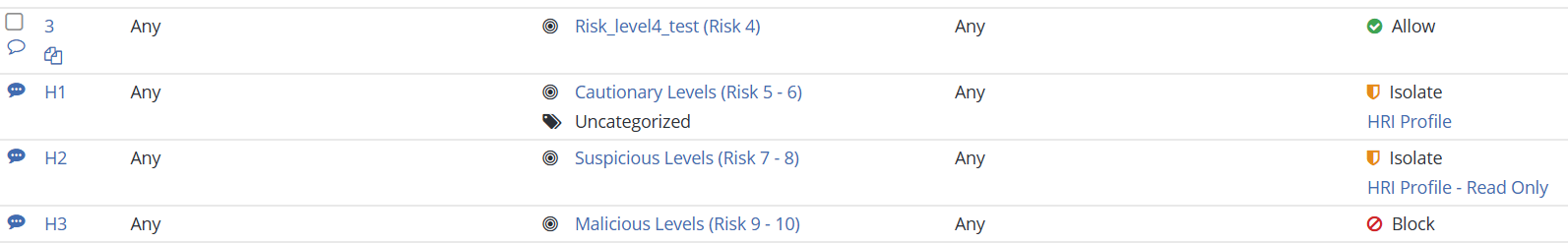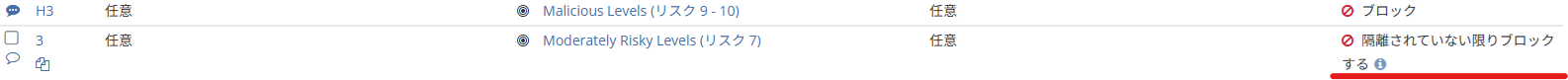 以下は 追加された High Risk Isolationルール(Hx) の下に Block Unless Isolationが移動された例です