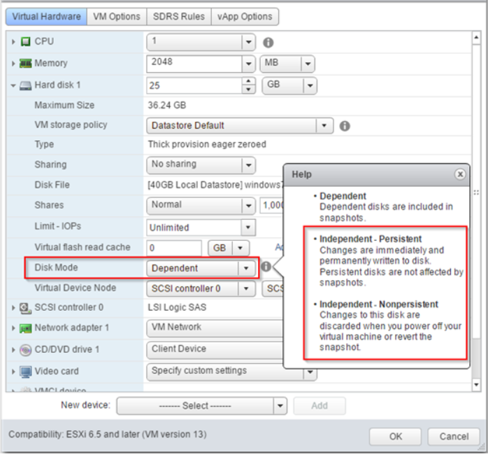 To confirm the VM has independent disks, edit the VM settings and look at the disk details as in the example image below: