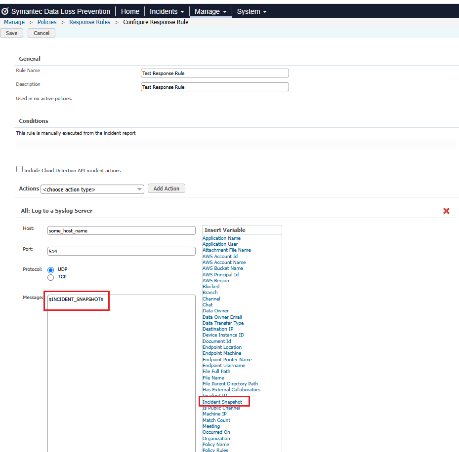 The DLP $INCIDENT_SNAPSHOT$ response rule variable points to the old UI Enforce incident snapshot page instead of the new UI page. This applies to both automated and smart response rules and any response rule type that can use the $INCIDENT_SNAPSHOT$ variable including "Log to a Syslog Server" and "Send Email Notification" etc.