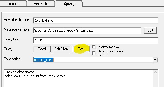 The following custom checking point was added to the sqlserver probe and noticed that 0 rows are returned when running sqlserver probe -> Query -> Test option even though the query works fine with SQL Server Management Studio