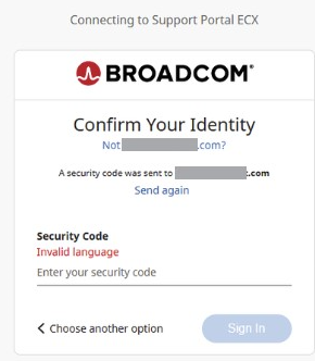 Logging into the Broadcom Support Portal requires a security code to be input. After inputting the security code and clicking submit, the user may see a message stating "Invalid language".