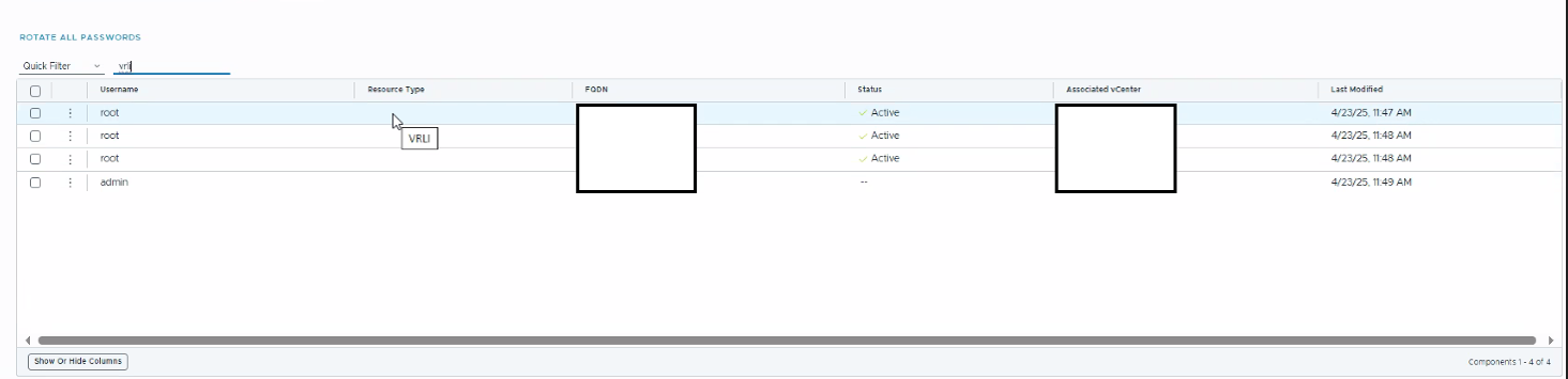 'Resource Type' not displayed in SDDC Password Management for VMware Aria components