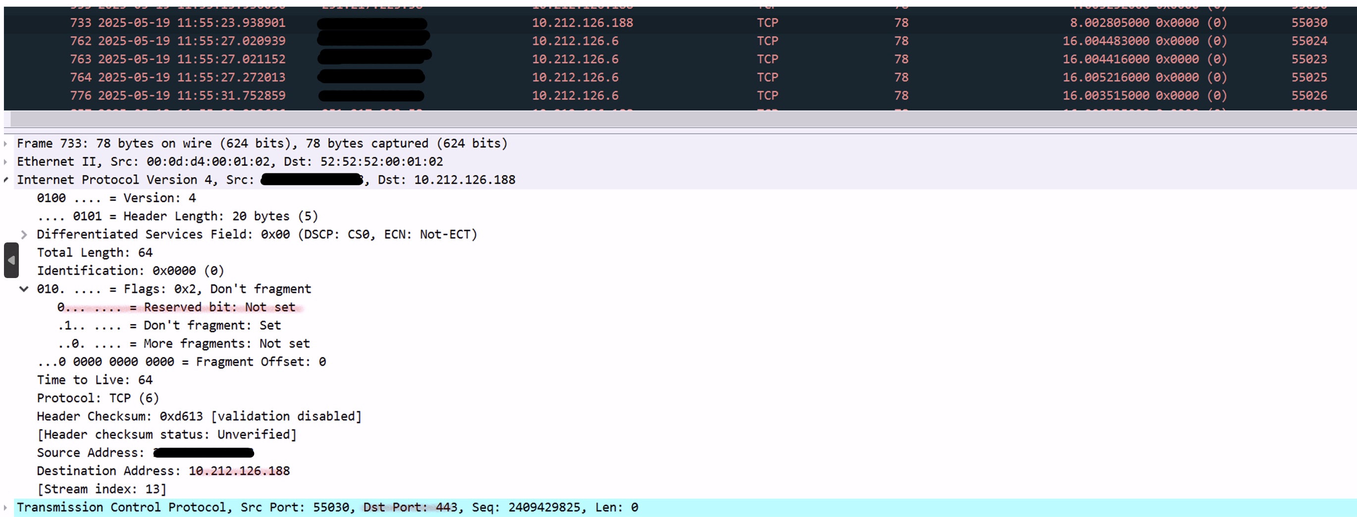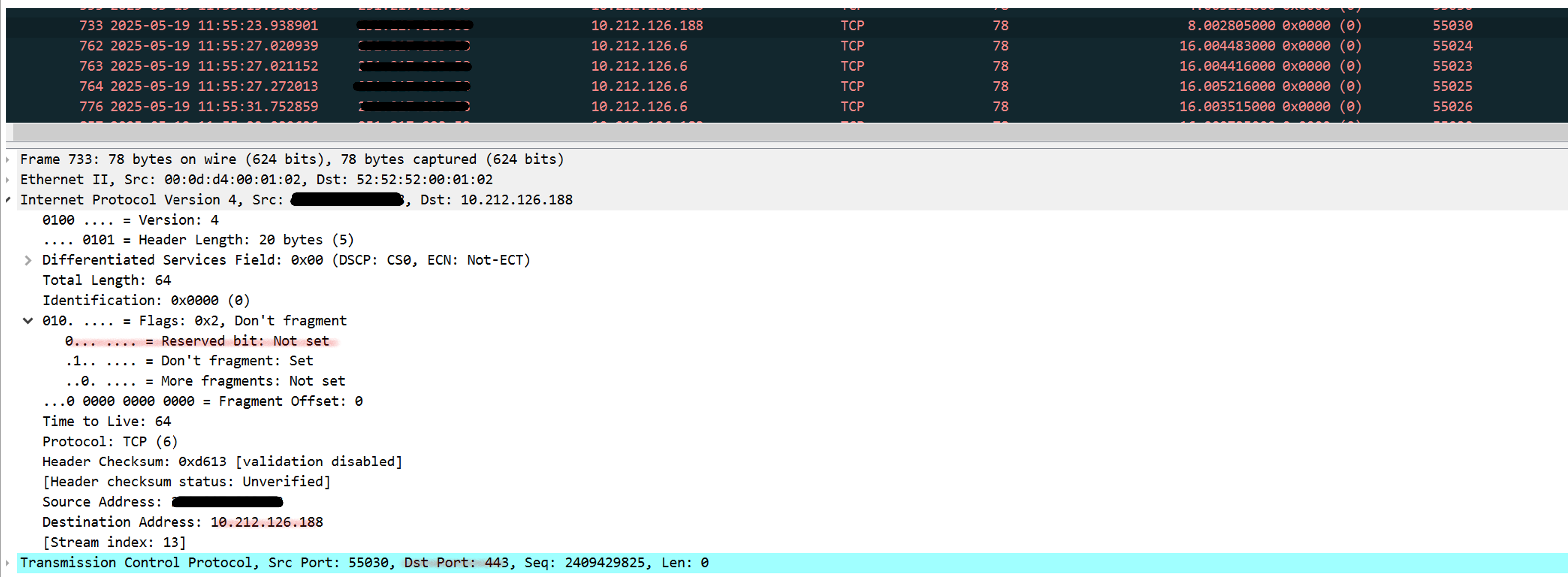Looking at the PCAPs, the IP reserved flags were not set, implying that the request would never get forwarded to ZTNA service.