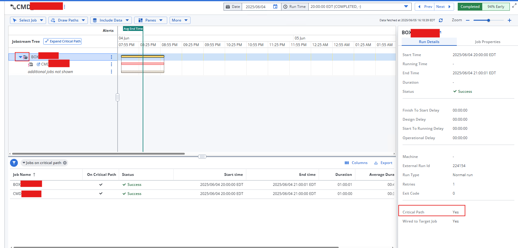 The icon of Critical Path is not present on Autosys Box even if the Run Details shows that it is a "Critical Path".