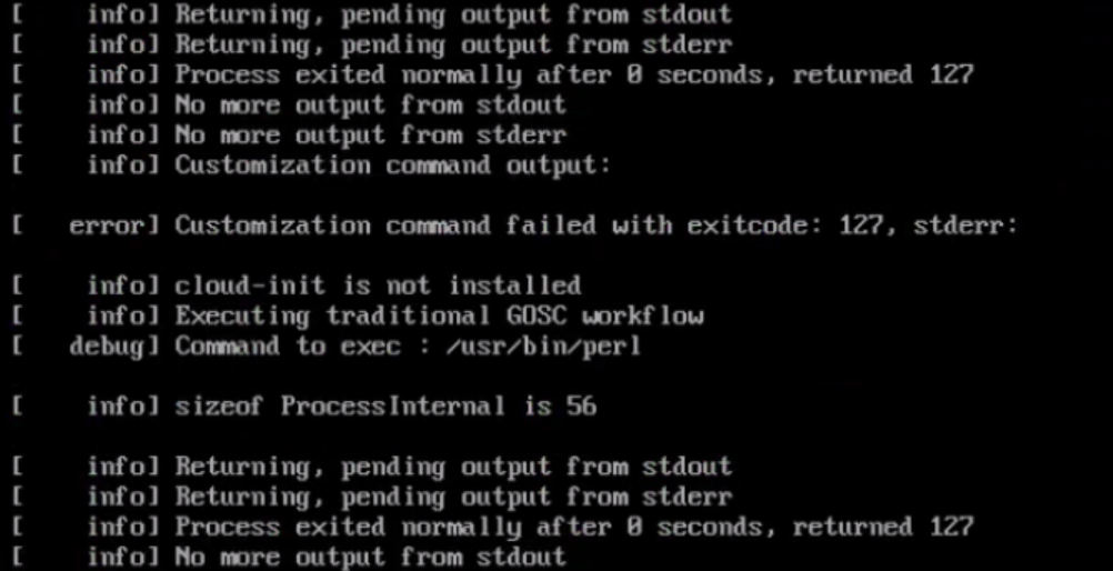 This issue happens if neither cloud-init nor perl is installed on the machine from which the source template was extracted.
