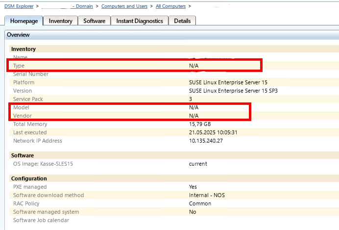 For some Linux Agents, some inventory data are missing or with N/A value.