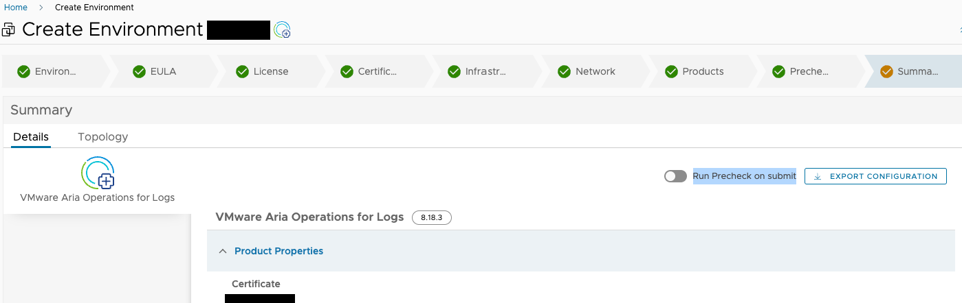 { "id" : null, "checkName" : "Cluster setup check for VMware Aria Operations for Logs.", "checkType" : "ERROR", "status" : "FAILED", "recommendations" : [ "Deploy either a single node or update worker nodes." ], "resultDescription" : "Either have a standalone cluster setup or have minimum 3 to a maximum 18 nodes for a valid cluster setup.", "elementType" : "CHECK", "childElements" : null, "localizedCheckNameId" : null, "localizedRecommendationsIds" : null, "recommendationParams" : null, "localizedDescriptionId" : null, "descriptionParameter" : null }