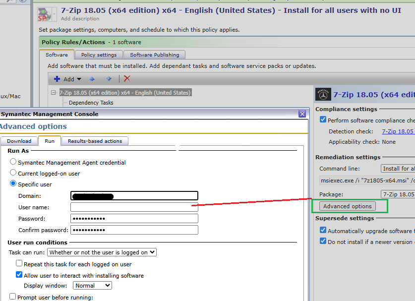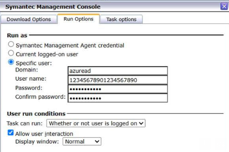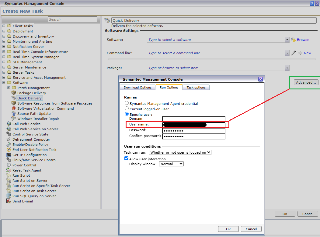 Thus, in ITMS 8.8 both Quick Delivery task and Managed Delivery policy may specify 'Run As' user in the following way - even with 20-symbols limitation: