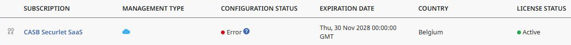 This issue may occur when the CASB entitlements associated with the tenant are in error state. Any errors will need to be checked with the Technical Support.