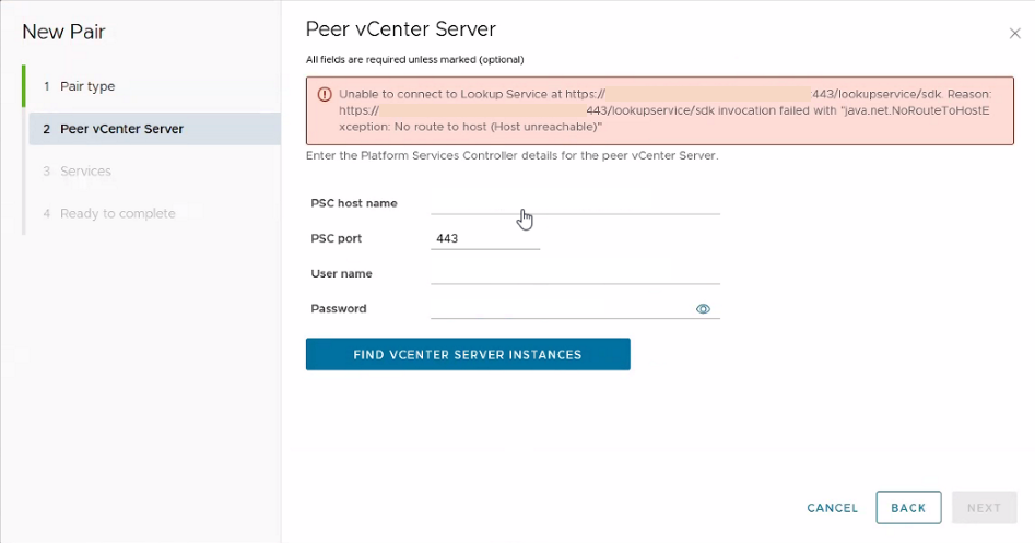 https://vCenterIP-or-FQDN:443/lookupservice/sdk invocation failed with "java.net.NoRouteToHostException: No route to host (Host unreachable)"