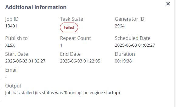 Post upgrade, while submitting existing data generation tiles, the job is running for days and not getting completed and it doesn’t shows any error while putting logs in DEBUG mode. This issue exists only for some of the generator tiles and others works fine.
