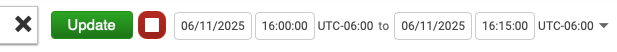 On many of the tabs in the Reports section of Security Analytics, there is a red stop button next to the green Update button.