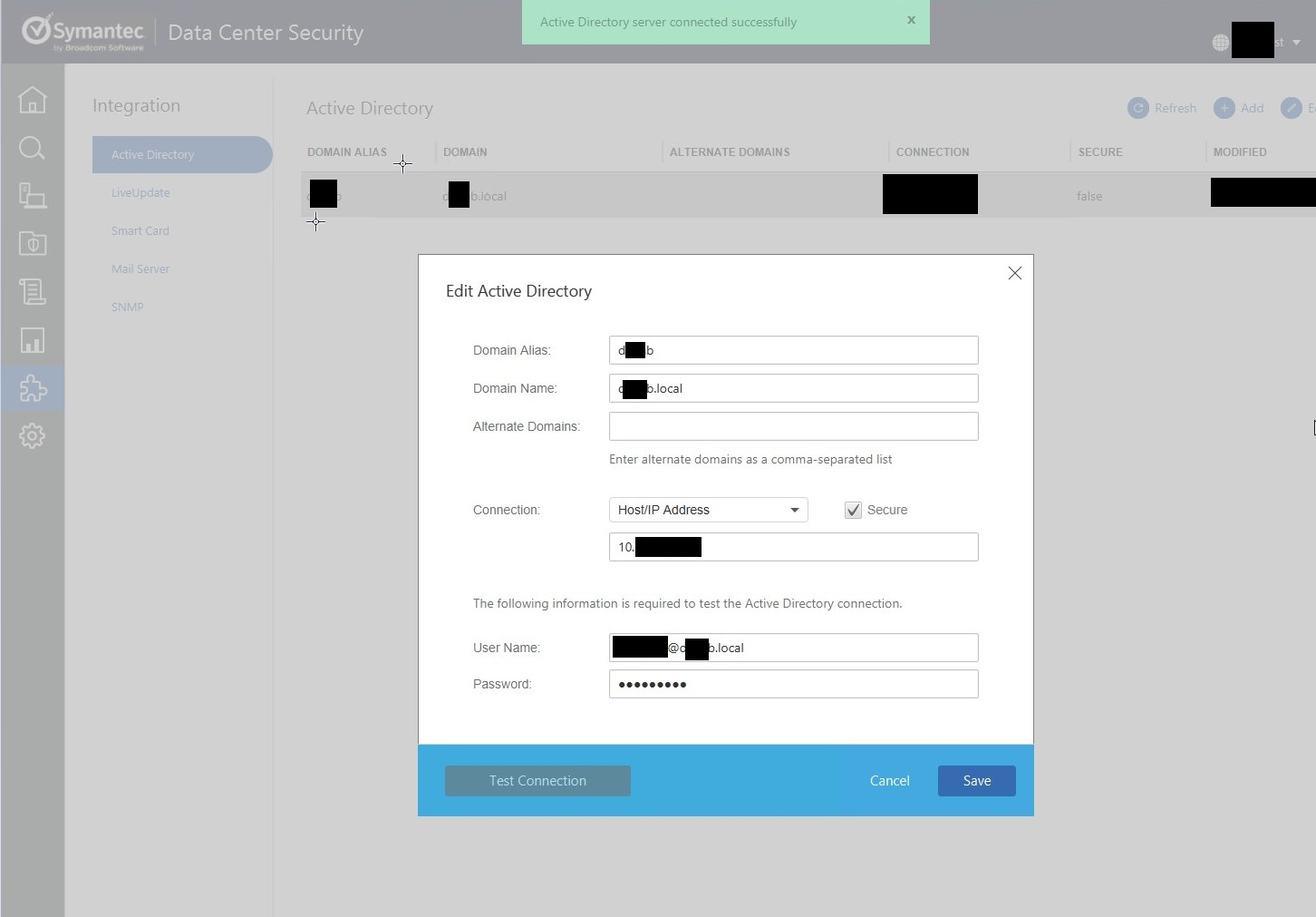 Note - You can also configure "non-secure" connection if the Active Directory is configured to serve on non secure port.