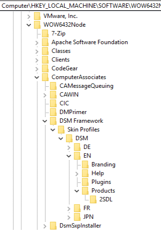 [HKEY_LOCAL_MACHINE\SOFTWARE\WOW6432Node\ComputerAssociates\DSM Framework\Skin Profiles\DSM\DE\Products\2ASM]