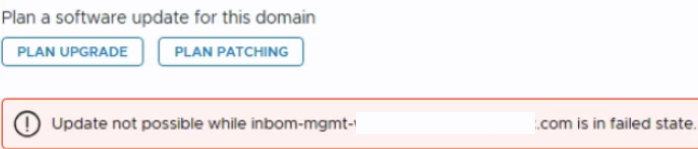Getting error while selecting the version during plan patching : Update not possible when inbom-mgmt-####.com is in failed state.