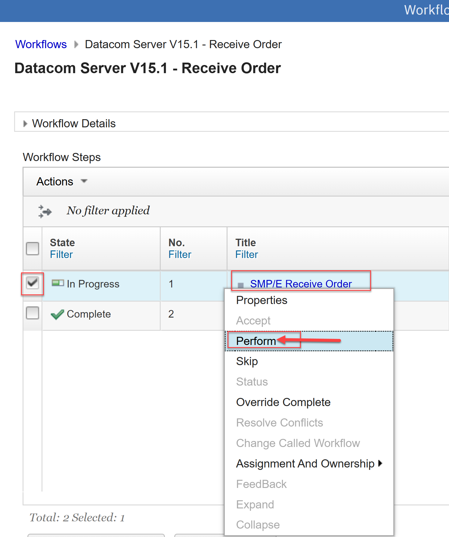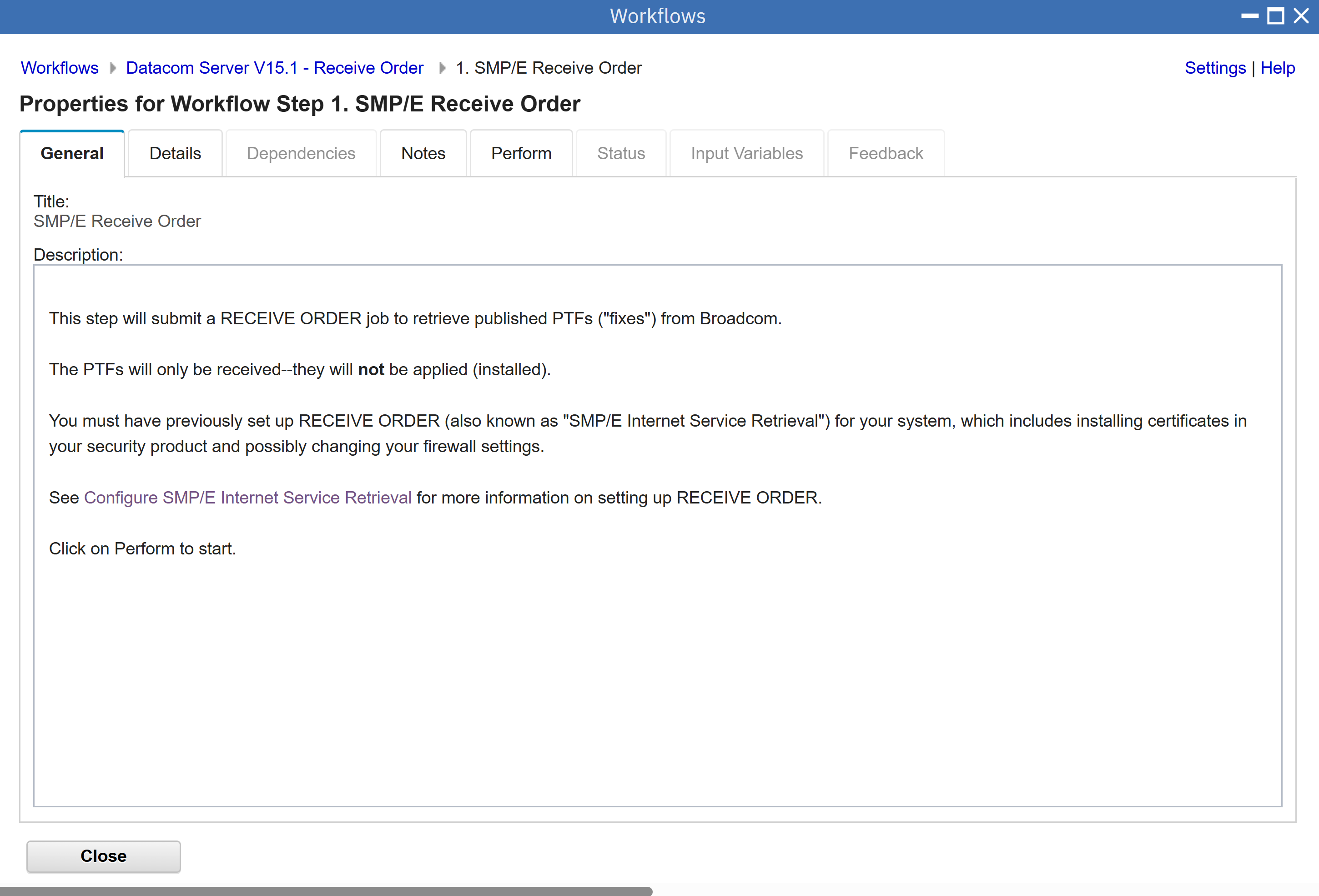 Perform the Datacom Server V15.1 - Receive Order Workflow to retrieve published PTFs ("fixes") from Broadcom.