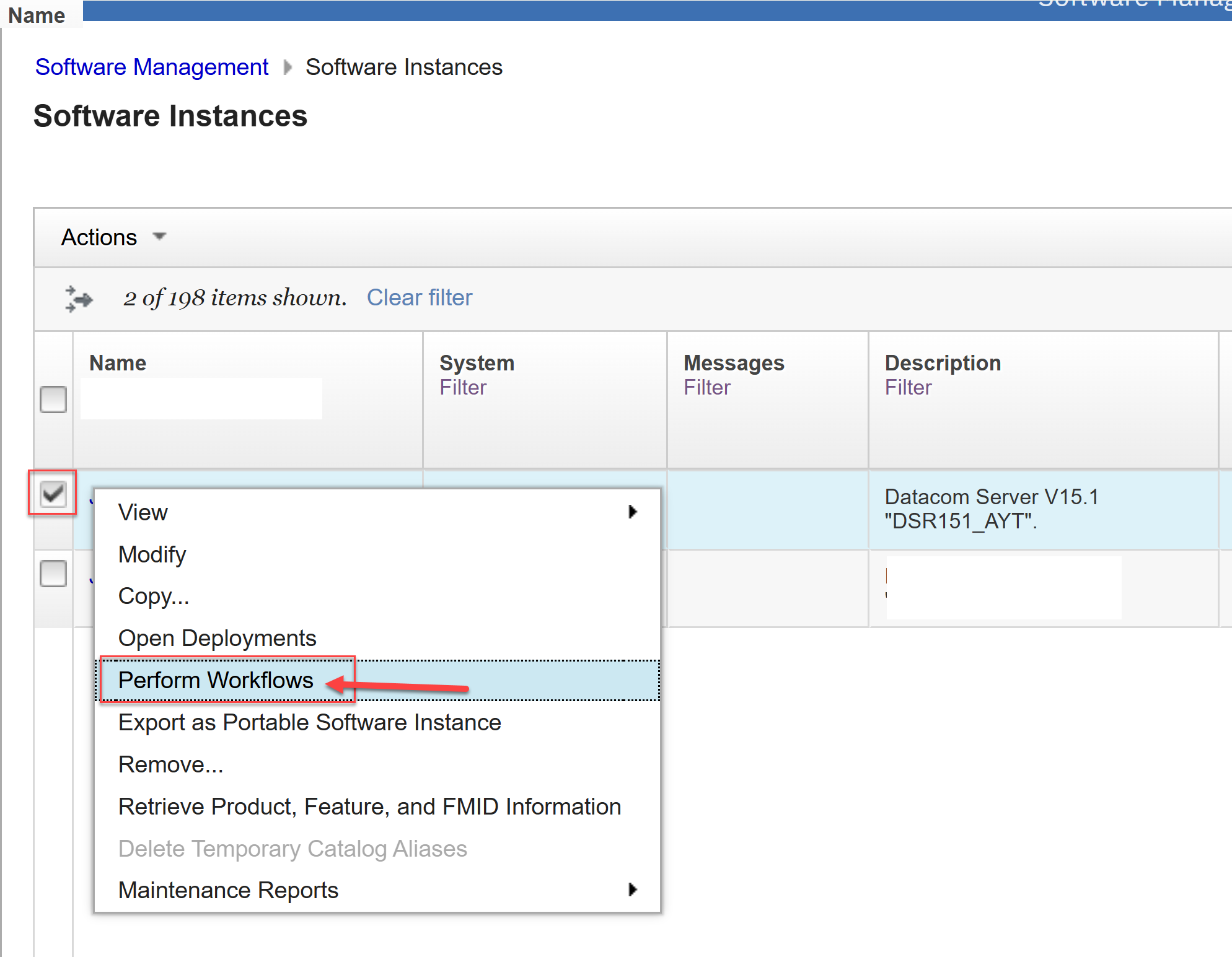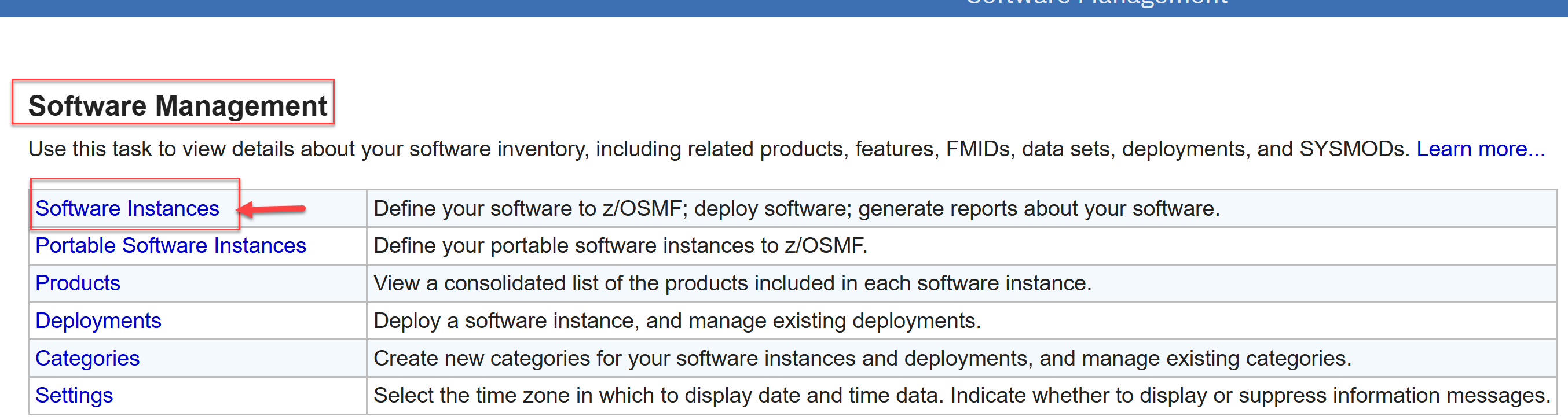 Display the Software Instances table in z/OSMF (Software Management, Software Instances).