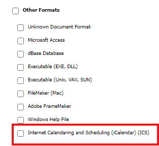 - In the exception, scroll down and select Other Formats > Internet Calendaring and Scheduling (iCalendar) (ICS)