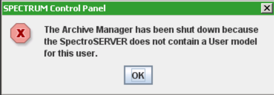 The Archive Manager is a client of the SpectroSERVER. When started, the user used to make a client connection to the SpectroSERVER is the OS user that was used to start the Archive Manager process. When using the Spectrum Control Panel, the user used to start the Archive Manager is the OS user that started the Spectrum Control Panel.