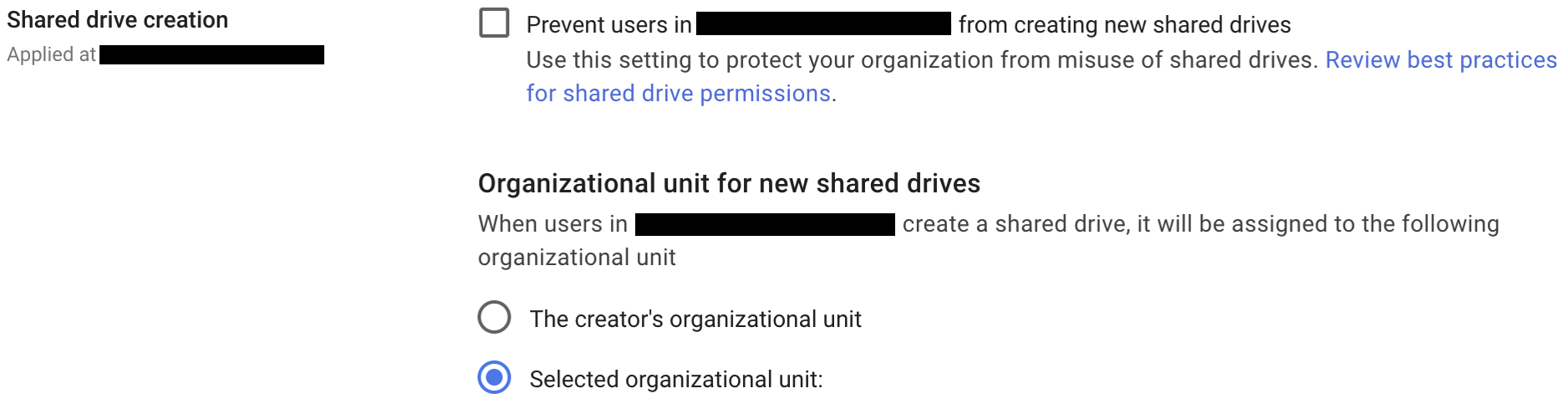 In case of Team Drive the condition applies to the OU (Organizational Unit) of the Team Drive.