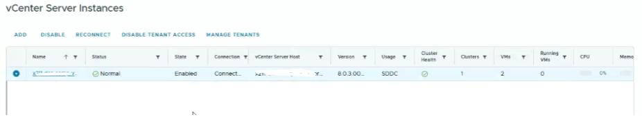 This issue is observed when we have the Tenant Access Enabled while adding the vCenter server instance at the Infrastructure Resource configuration.