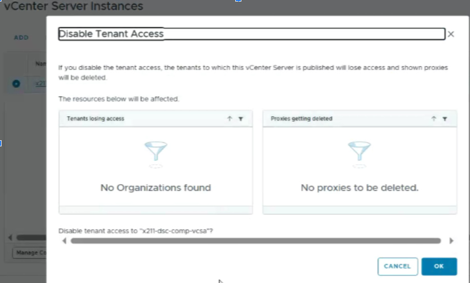 For an existing vCenter server instance which is configured with Tenant access enabled, please follow the instructions as mentioned below: