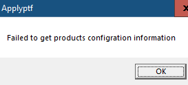 This problem could occur if Applyptf.exe could not find the file applyptf.ini
