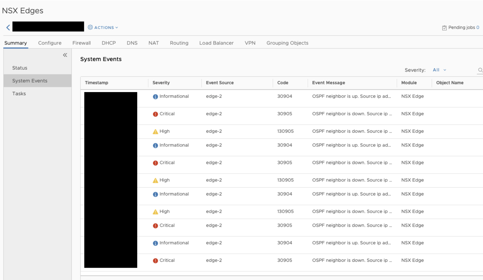 We can notice OSPF flapping alarms for the NSX V Edges as below :