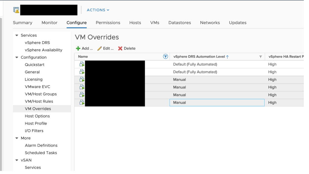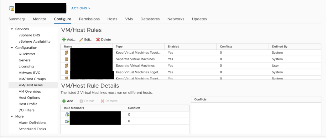 Login to the VC, navigate to the problematic cluster, ensure VM affinity rules are set and enabled.