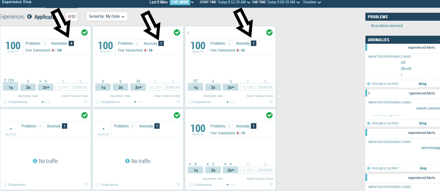 SaaS UI when trying to see Problems and Anomalies:
