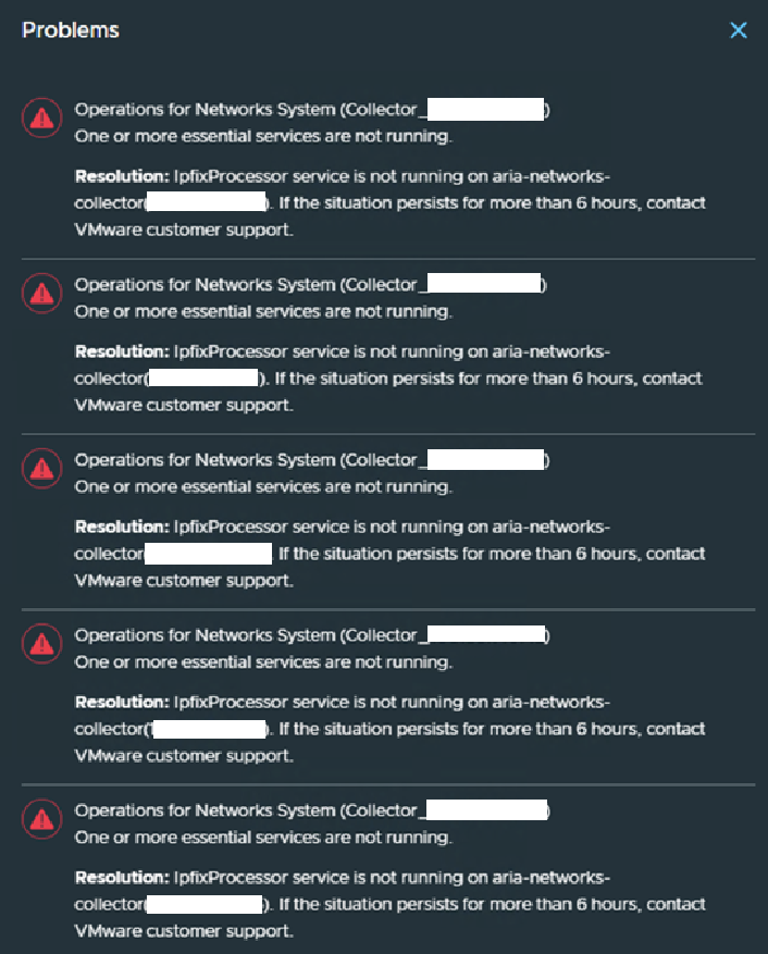 Error message seen on GUI is as below on multiple Aria Operations or Networks collector(s).