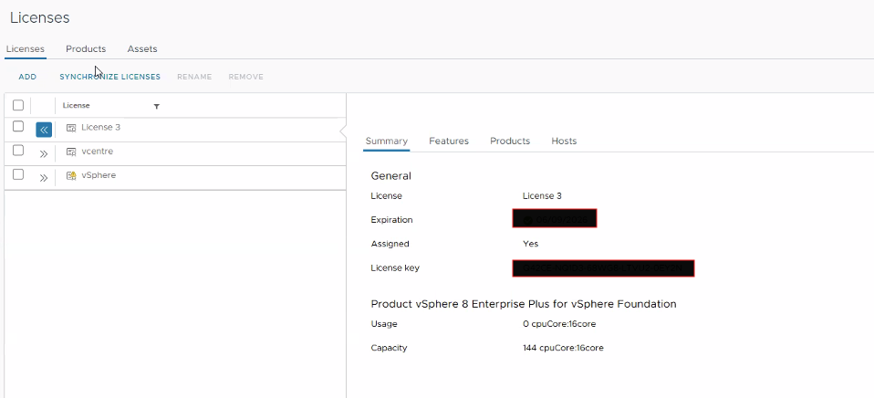 The issue occurs if the 'Solution License' is used on vSphere version is lower than 8.0 Update 2b.