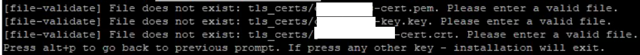 DX O2 Upgrade AIOpsManagement.sh --update failed with "File does not exist: tls_certs/ pem, key and crt. Please enter a valid file"