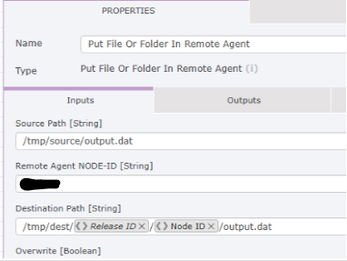 In above example, the agents are copying the file /tmp/source/output.dat to the same remote agent into /tmp/dest/<releaseID>/output.dat