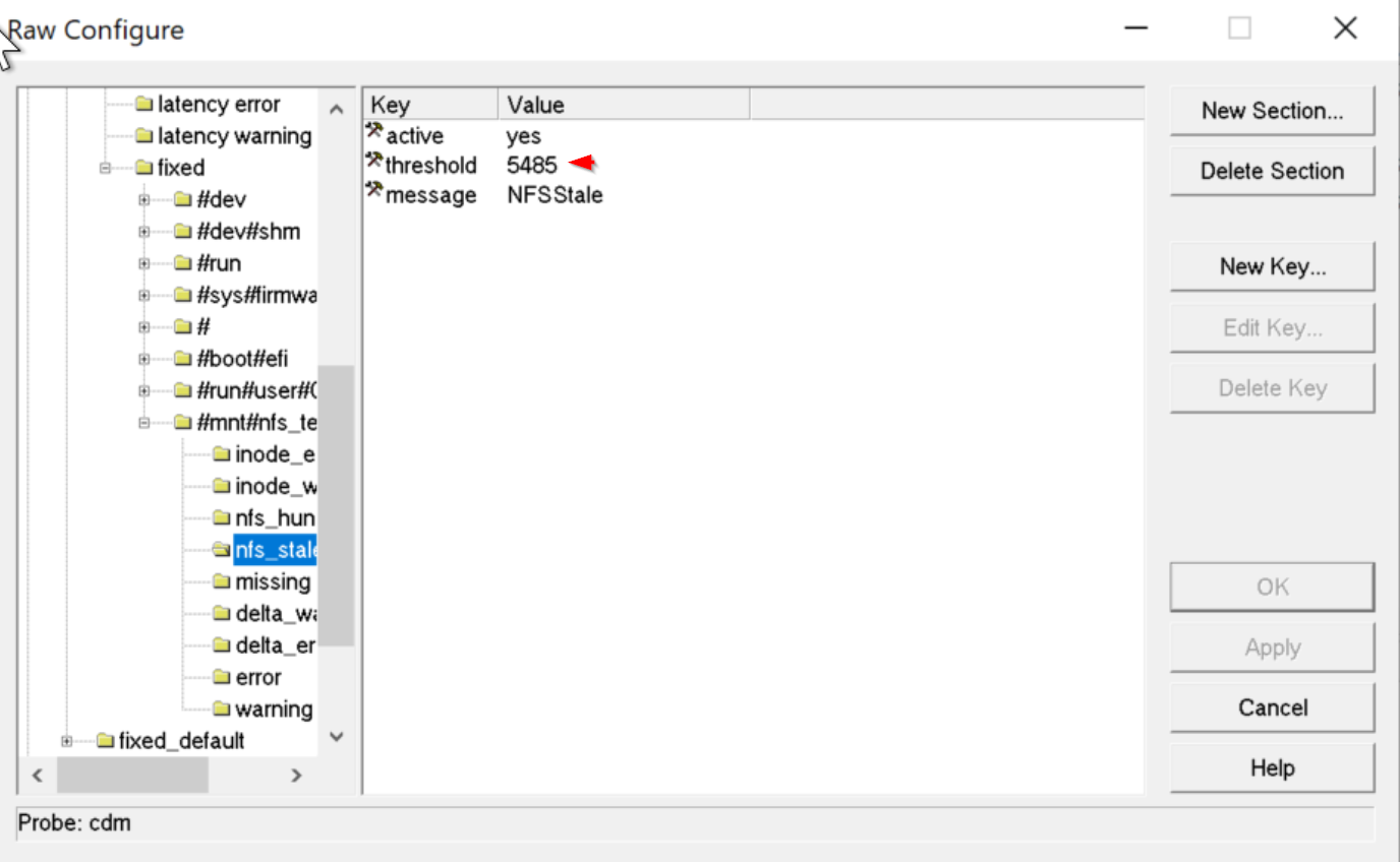 For the 'Stale' state, the threshold value as seen below is not actually used for any functionality - the structure of the config file requires a threshold to be present since it relates to an alarm, but the actual value is not considered. A filesystem is either stale or not - the value set for threshold does not matter as long as the value is set.