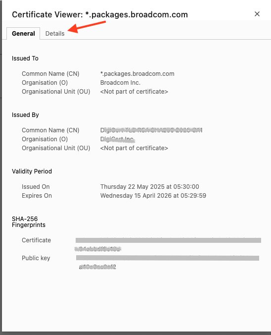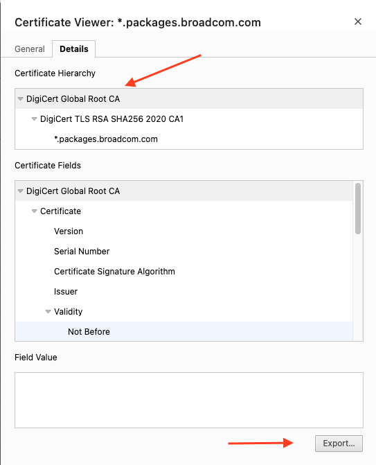 Alternate way to grab the Digicert Global Root CA in case you don't see the Digicert Global Root certificate from your browser.