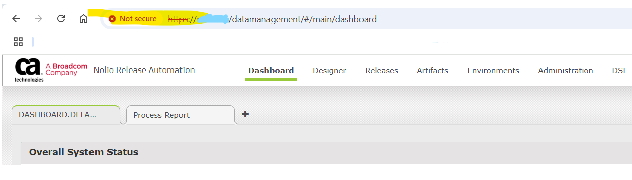 When opening Release Automation with https url in a web browser, "Not Secure" message appears :