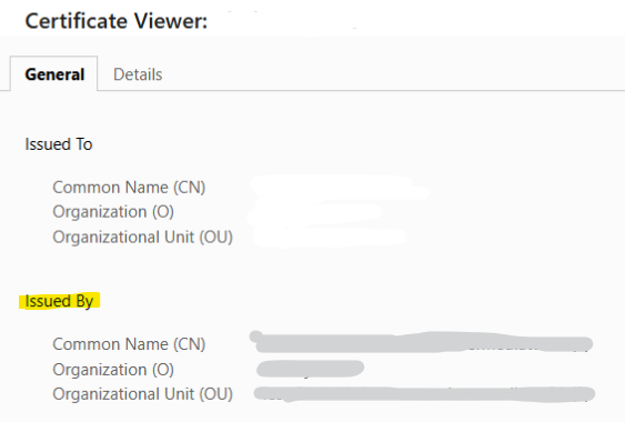 Click on Certificate details and check the certificate name displayed in "Issued By" :