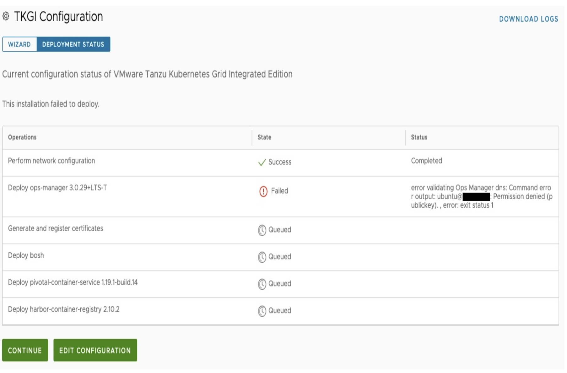 Afterwards you can re-run the deployment of TKGi via Management Console and it should now succeed.