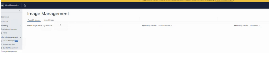 Login to the SDDC UI > Lifecycle Management > Image Management > Import Image > Select the MGMT domain and the cluster.