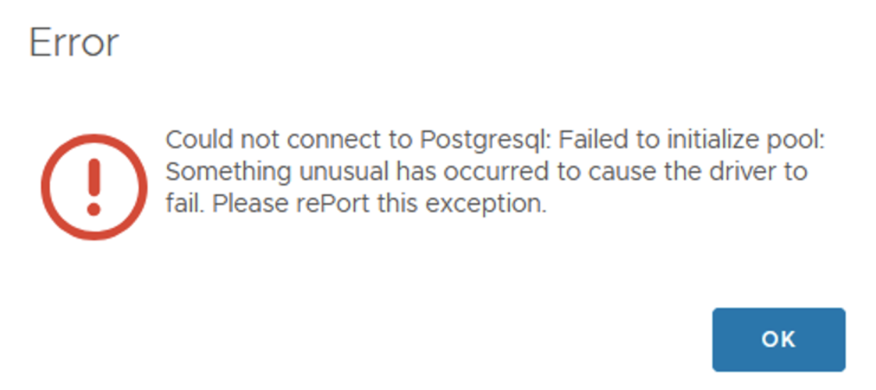 ERROR collector 58487 [ops@4413 threadId="126792" threadName="TasksManager-TaskHandler-260"] [com.bluemedora.exuno.DataProvider.error] - com.bluemedora.slf4jtoexunologger.Logger: HikariPool-2 - Exception during pool initialization.org.postgresql.util.PSQLException: Something unusual has occurred to cause the driver to fail. Please report this exception.Caused by: org.bouncycastle.crypto.fips.FipsUnapprovedOperationError: password must be at least 112 bits at org.bouncycastle.crypto.fips.FipsPBKD$Parameters.<init>(Unknown Source) ~[bc-fips-2.0.0.jar:2.0.0] at org.bouncycastle.crypto.fips.FipsPBKD$Parameters.<init>(Unknown Source) ~[bc-fips-2.0.0.jar:2.0.0] at org.bouncycastle.crypto.fips.FipsPBKD$ParametersBuilder.using(Unknown Source) ~[bc-fips-2.0.0.jar:2.0.0] at org.bouncycastle.jcajce.provider.ProvPBEPBKDF2$BasePBKDF2.engineGenerateSecret(Unknown Source) ~[bc-fips-2.0.0.jar:2.0.0] at javax.crypto.SecretKeyFactory.generateSecret(Unknown Source) ~[?:?]