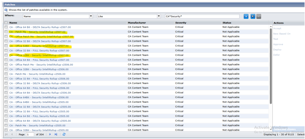 "New Based On" Option is available for package "CA * Security IntelliRollup *" patches